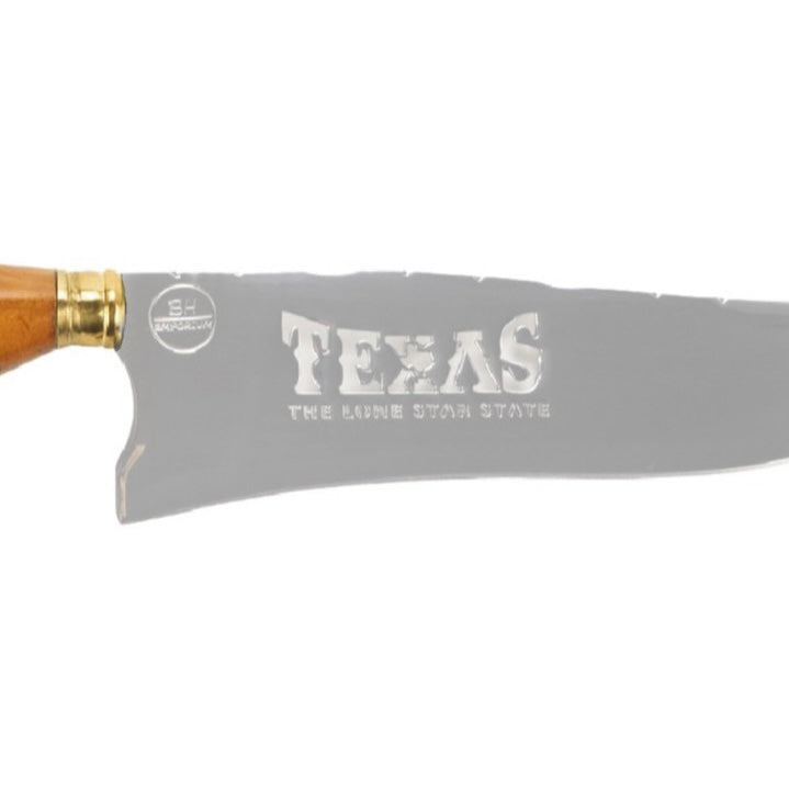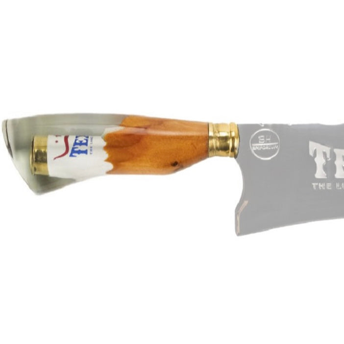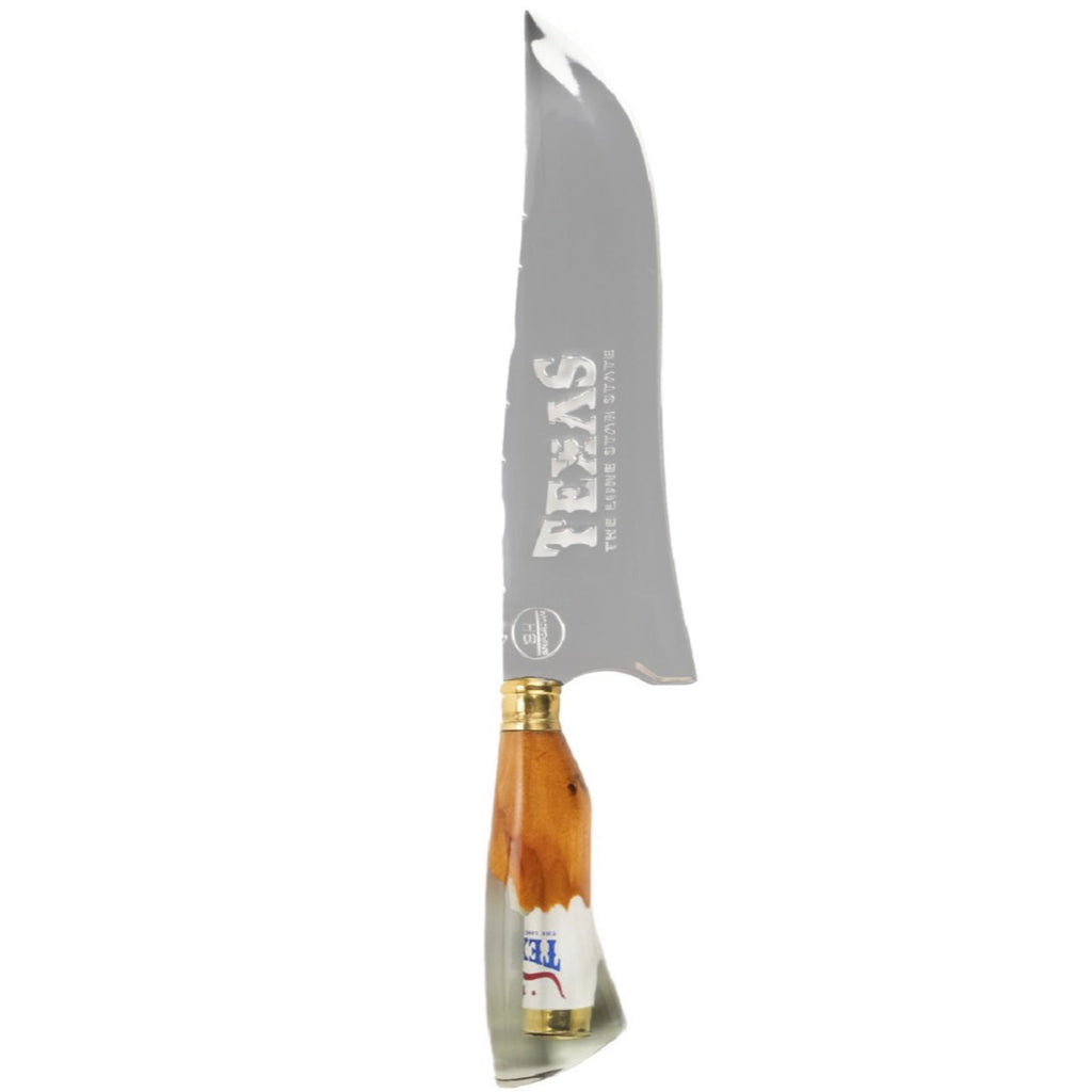 Crafted in Brazil with a 420C stainless steel blade, the Artisan BBQ Knife offers precision cutting with a lightweight, ergonomic liquid crystal handle. The engraved design pays homage to the great State of Texas! Everything is bigger in Texas and the same goes with this knife. Upgrade your cutting game today with this custom knife!